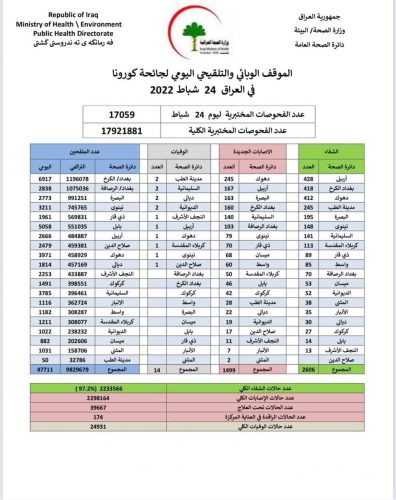 الصحة تسجل 1499 اصابة جديدة بكورونا
