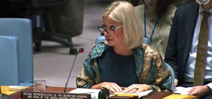 وقدمت المبعوثة الاممية للعراق جينين بلاسخارات خلال الجلسة الجلسة احاطة لمجلس الأمن في مقر الأمم المتحدة بنيويورك عن الوضع في العراق وعن عمل بعثة الأمم المتحدة لمساعدة العراق.
