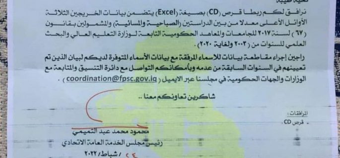 بالوثيقة.. مجلس الخدمة يخاطب هيئة التقاعد لغرض التقاطع الوظيفي للأوائل