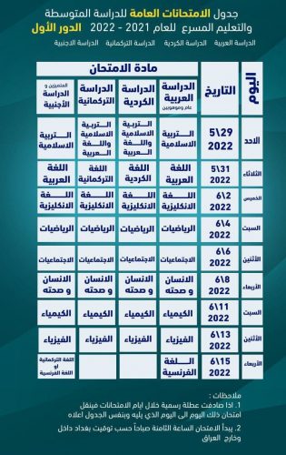 التربية تعلن عن جدول الامتحانات العامة (الوزارية) للدراسة المتوسطة