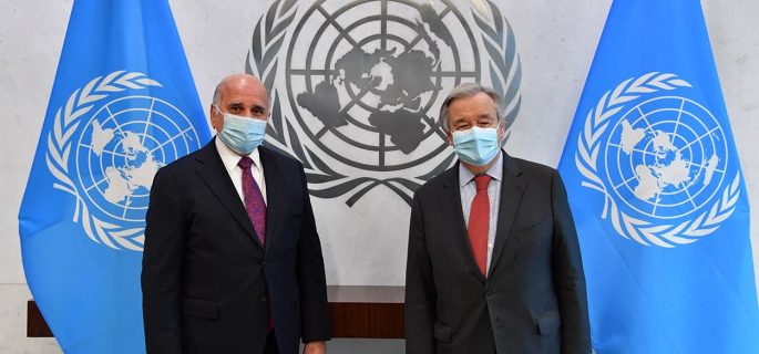 التقى وزير الخارجيَّة فؤاد حسين، الجمعة، مع الأمين العامِّ للأمم المتحدة أنطونيو غوتيريش في مقر الأمم المتحدة في نيويورك، لبحث مُستجدَّات الأوضاع في العراق والمنطقة.