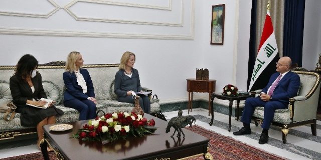 وذكر المكتب الإعلامي لرئاسة الجمهورية في بيان تلقت*الرأي* الدولية نسخه منه، أن “رئيس الجمهورية برهم صالح، استقبل رئيسة بعثة الاتحاد الأوروبي لمراقبة الانتخابات فيولا فون كرامون بمناسبة انتهاء عمل البعثة”.