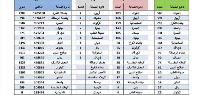 الصحة تسجل 1203 اصابة جديدة بفايروس كورونا