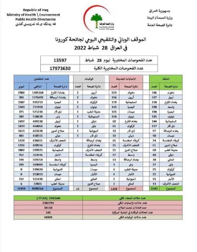 الصحة تسجل 1203 اصابة جديدة بفايروس كورونا