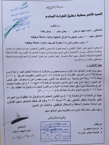 بالوثائق : قانوني يرفع دعوى قضائية ضد برهم صالح والكاظمي