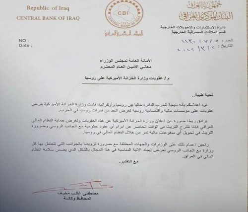 بالوثيقة : العراق يتخذ قرارا بعد العقوبات الاميركية على روسيا
