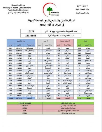 الصحة تسجل 1006 اصابة جديدة بفيروس كورونا