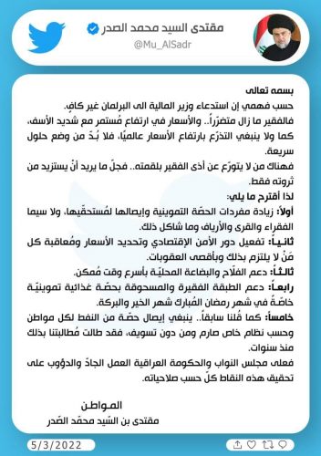 الصدر: استدعاء وزير المالية غير كاف