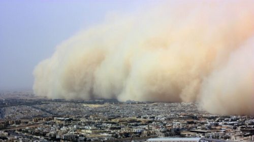 انتشرت في مواقع التواصل الاجتماعي مقاطع فيديو تظهر لحظة اجتياح عاصفة ترابية لمناطق في السعودية.