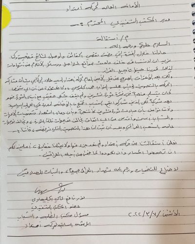 بالوثيقة : احدى مؤسسات امتداد تقدم استقالتها من الحركة بسبب التصويت للحلبوسي