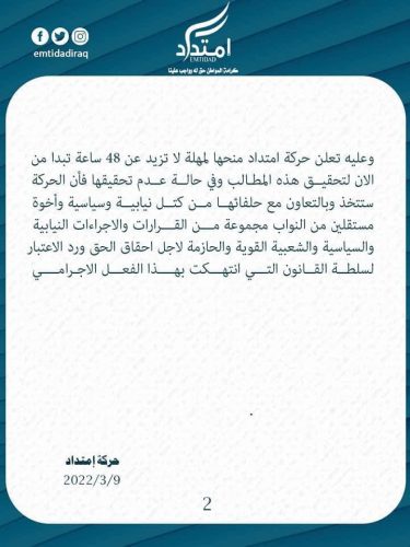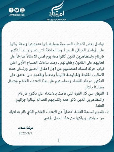 بالوثائق: امتداد تصدر بياناً حول حادثة الاعتداء على المتظاهرين في بابل