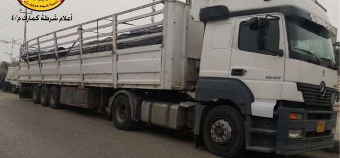 وذكرت القيادة في بيان تلقت*الرأي* الدولية نسخة منه، ان”مفارز قسم شرطة كمرك ميسان التابعة لمديرية شرطة كمارك المنطقة الرابعة، تمكنت من ضبط عجلة نوع تريلة تحتوي على ( ألواح وصفائح ولفات واشرطة بلاستيكية)، وذلك لعدم وجود شهادة منشأ وإجازة استيراد ووصل ضريبي، وكذلك عدم وجود تواقيع لجنة الكشف”.