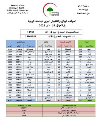 الصحة تسجل 657 إصابة جديدة بكورونا
