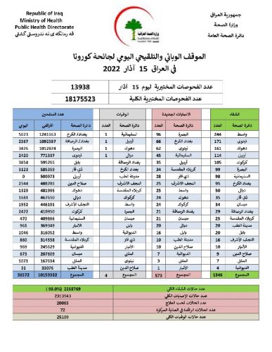 الصحة تسجل 573 اصابة جديدة بكورونا