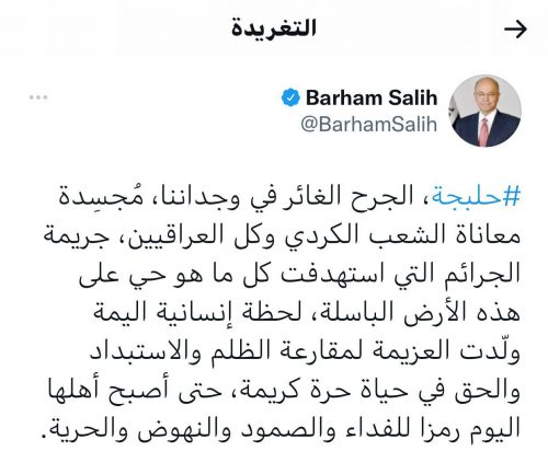 رئيس الجمهورية يغرد في ذكرى جريمة حلبجة
