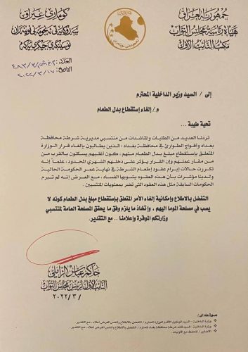 بالوثيقة : الزاملي يطالب الداخلية بإلغاء استقطاعات بدل الطعام