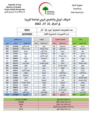 الصحة تسجل 262 إصابة جديدة بكورونا
