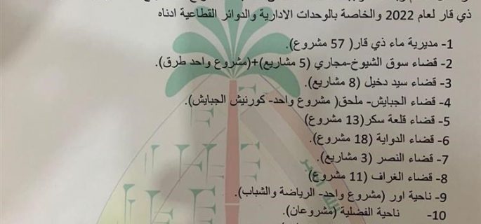 بالوثيقة.. ذي قار ترسل اكثر من 120 مشروعاً لصندوق الاعمار