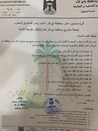 بالوثيقة.. ذي قار ترسل اكثر من 120 مشروعاً لصندوق الاعمار