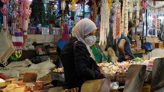 People shop at the Shorja market in central Baghdad ahead of the Muslim Eid al-Adha holiday amid the COVID-19 pandemic, on July 28, 2020. (Photo by SABAH ARAR / AFP) (Photo by SABAH ARAR/AFP via Getty Images)