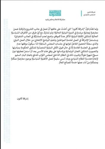 إشراقة كانون تضع 3 شروط لحضور جلسة انتخاب رئيس الجمهورية
