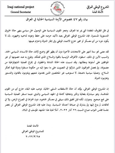 بالوثيقة: المشروع الوطني يؤكد مقاطعته جلسة انتخاب رئيس الجمهورية