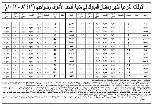 مكتب المرجعية الدينية يصدر امساكية شهر رمضان