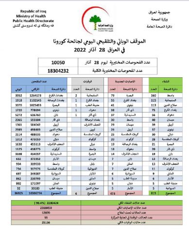 الصحة تسجل 473 اصابة جديدة بكورونا