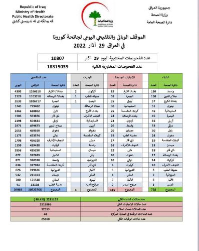 الصحة تسجل 415 إصابة جديدة بفيروس كورونا