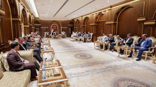 اجتمع رئيس مجلس النواب محمد الحلبوسي ونائبيه، الثلاثاء، برؤساء الكتل النيابية.
