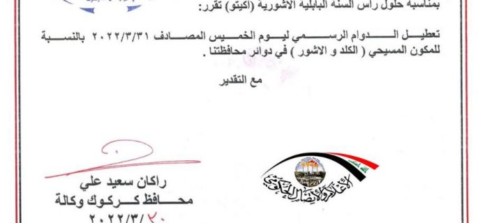 بالوثيقة.. كركوك تعطل الدوام لهذه الفئة غداً