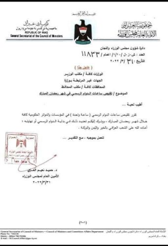 بالوثيقة.. تقليص الدوام الرسمي في جميع المؤسسات الحكومية خلال شهر رمضان