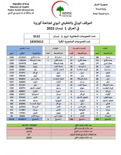 الصحة تسجل 358 اصابة جديدة بكورونا