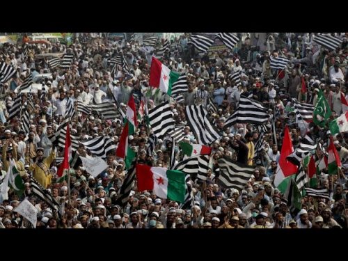 خرجت مساء اليوم الأحد، تظاهرات حاشدة في العاصمة الباكستانية إسلام أباد دعمًا لرئيس الوزراء عمران خان الذي أطاحه البرلمان الباكستاني امس السبت.