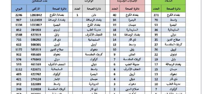 الصحة تسجل 207 اصابات جديدة بكورونا