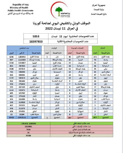 الصحة تسجل 207 اصابات جديدة بكورونا