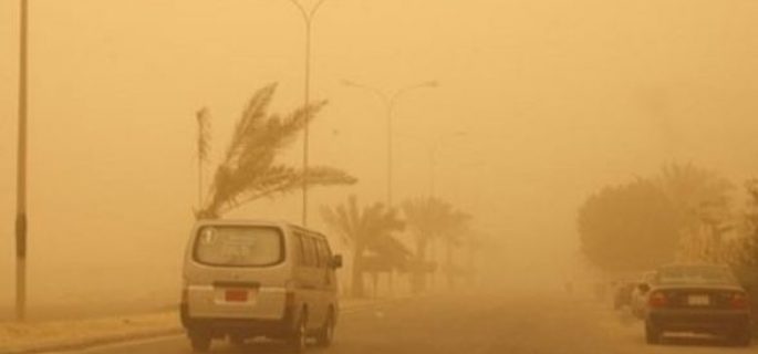 وأوضح أن “المنخفض الجوي سيبدأ بالانحسار تدريجيا مساء اليوم والمنخفض الجاف الذي اثر على البلاد سوف يبدأ بالانحسار خلال الليل وذلك لتقدم امتدادات مرتفع جوي قادم من البحر المتوسط الذي سيقلل تاثيره، لذلك تصبح قوة المرتفع القادم من البحر المتوسط وابتداءً من الاقسام الغربية من البلاد”، متوقعا أن “هذا المرتفع سوف يؤدي إلى انخفاض درجات الحرارة لهذا اليوم تقريبا من حدود 5-8 درجة مئوية ترافقه الرياح الشمالية الغربية وتكون معتدلة وسرعة الرياح تتراوح من 30-40 كيلومترا وهذه من العوامل التي تساعد على تصاعد الغبار في عموم البلاد”.