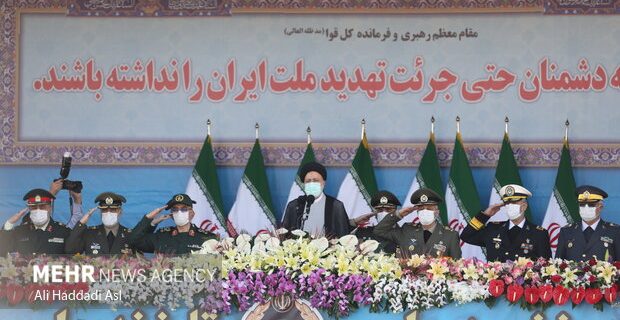 وقال رئيسي خلال العرض العسكري بمناسبة يوم الجيش في الجمهورية الإسلامية الإيرانية، ان القوات المسلحة الايرانية تمتلك قدرات عديدة تتمثل أهمها في انها تتشكل من قوات مخلصة وكوادر بشرية قوية.