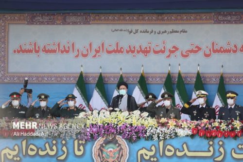 وقال رئيسي خلال العرض العسكري بمناسبة يوم الجيش في الجمهورية الإسلامية الإيرانية، ان القوات المسلحة الايرانية تمتلك قدرات عديدة تتمثل أهمها في انها تتشكل من قوات مخلصة وكوادر بشرية قوية.