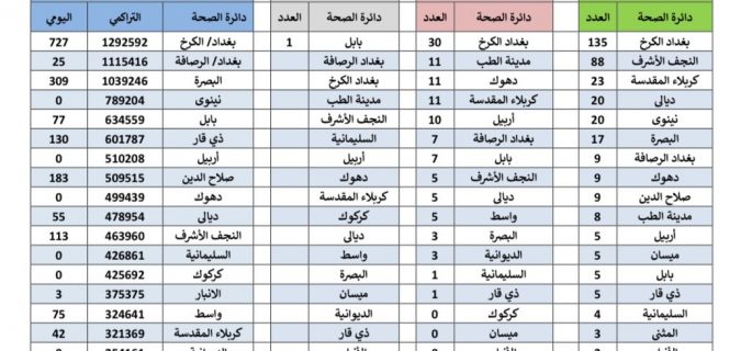 الصحة تسجل 110 اصابات جديدة بفيروس كورونا