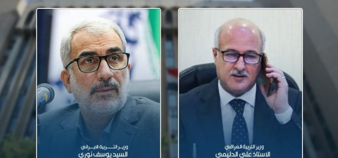 وذكرت وزارة التربية في بيان تلقت *الرأي* الدولية نسخة منه ان “وزير التربية علي حميد الدليمي تلقى، اليوم، اتصالا هاتفيا من وزير التربية والتعليم الإيراني يوسف نوري”، مبينا انه “تم بحث العلاقات الثنائية بين البلدين في قطاع التعليم والآليات الكفيلة بتعزيزها وتطويرها”.