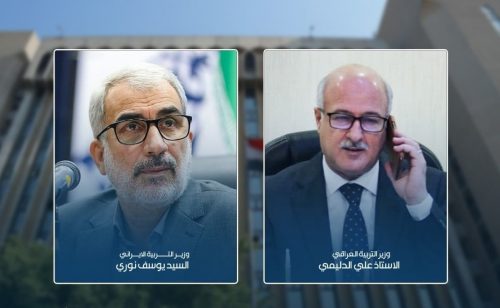 وذكرت وزارة التربية في بيان تلقت *الرأي* الدولية نسخة منه ان “وزير التربية علي حميد الدليمي تلقى، اليوم، اتصالا هاتفيا من وزير التربية والتعليم الإيراني يوسف نوري”، مبينا انه “تم بحث العلاقات الثنائية بين البلدين في قطاع التعليم والآليات الكفيلة بتعزيزها وتطويرها”.