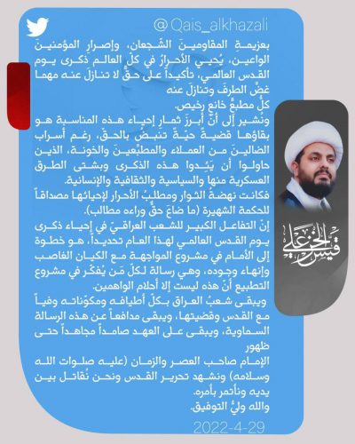 الخزعلي يشيد بالتفاعل الشعبي لاحياء يوم القدس.. خطوة لمواجهة الكيان الغاصب
