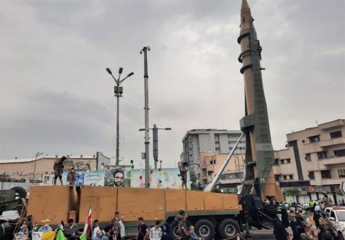 عرض صواريخ باليستية خلال مسيرة يوم القدس في طهران
