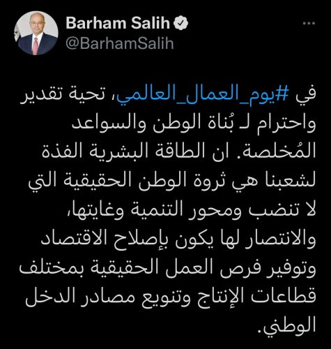 رئيس الجمهورية يهنئ بعيد العمال: الانتصار لهم يكون بإصلاح الاقتصاد وتوفير فرص العمل