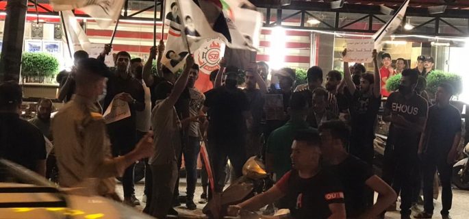 عشرات المحتجين يتظاهرون امام السفارة التركية في بغداد