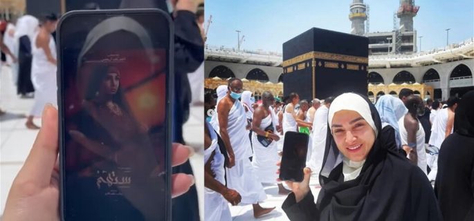 روجينا تثير جدلا وغضبا بإعلانها عن مسلسلها الجديد من أمام الكعبة