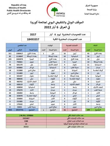 الصحة تسجل 70 اصابة جديدة بكورونا