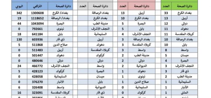 الصحة تسجل 55 اصابة جديدة بكورونا