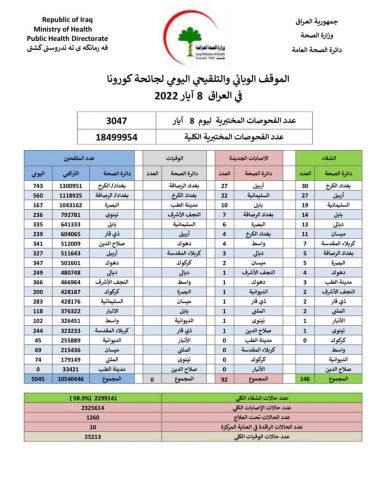 الصحة تسجل 92 إصابة جديدة بفيروس كورونا